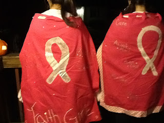 But they took it up to a whole new level. They did not get candy on this Halloween. They asked for donations! This was so generous and kind. This is how children become women and men of the future. This is how we end breast cancer. This is how I believe in HOPE. So when you sit back and watch this you will not be able to find negativity in this, if you do, well you lose. I find two girls on a mission, two girls trying to be charitable, two girls who want a CURE, two cure and a boy with HOPE.....and a very LOUD woman who is so proud of this generation!